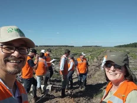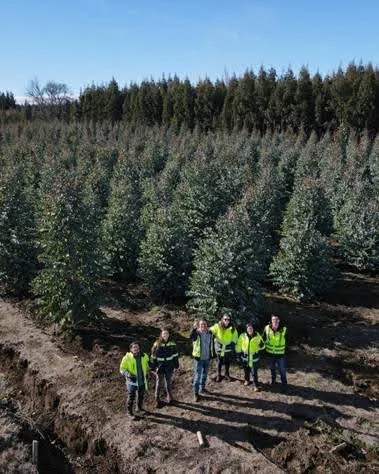 Annual meeting attendees visiting a Smurfit Westrock operational pruning stand (top) and forest nursery (bottom).