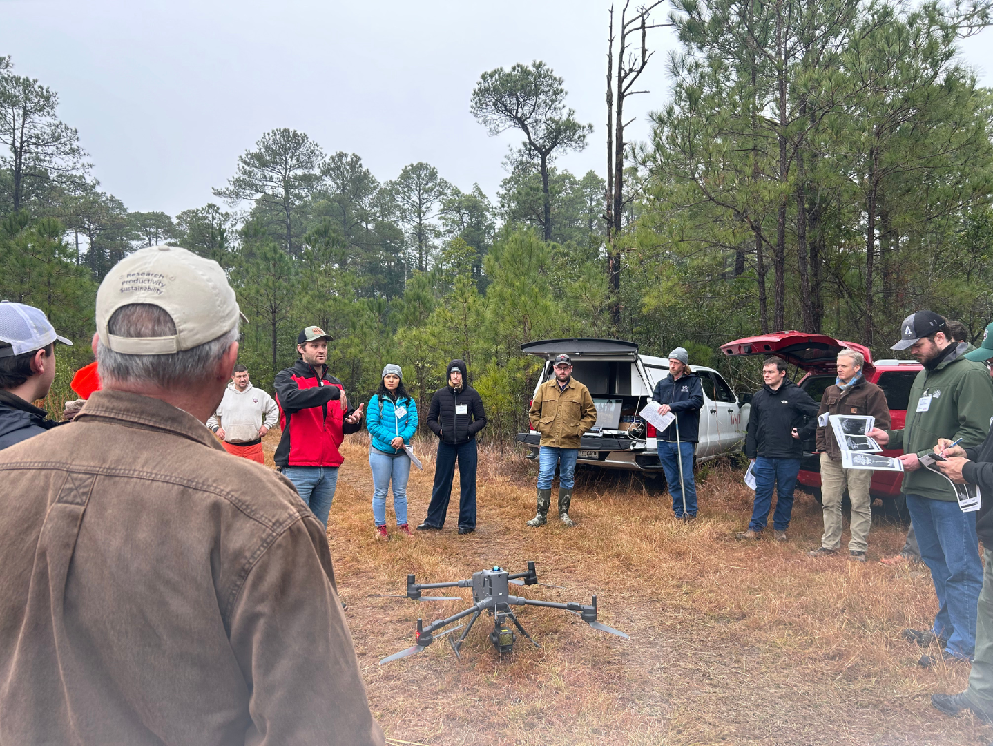 DJI Matrice 400 UAV and L2 LiDAR Sensor demo at the 2025 Contact Meeting in Bladen Lakes State Forest. This drone is being used for 2026 FPC study measurements and for the LiDAR validation study.